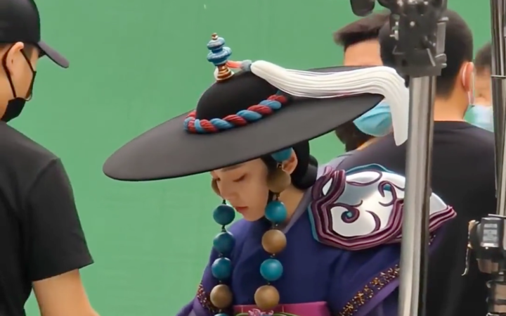 视频里,演员们穿着精致的戏服,在片场与工作人员互动、准备拍摄;摄影机、灯光、演员、助理,全都在忙。