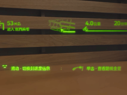 系统也为不同功能设定了不同的默认距离,例如需要和人面对面交流的「翻译」界面就设定在 2m,需要留意路况的「导航」就设定在 9m,不仅能降低眼球的压力,也能保障出行安全。